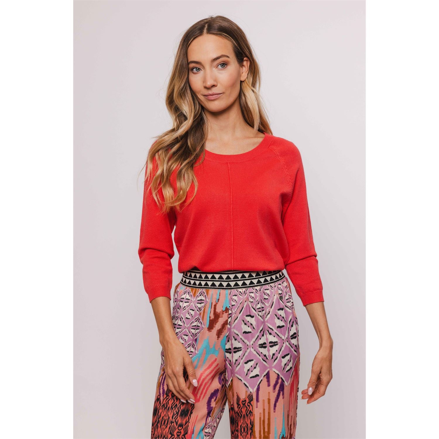 Fine knitted sweater in viscose blend yarn. This sweater has raglan sleeves, round neck and playful slit at the back.