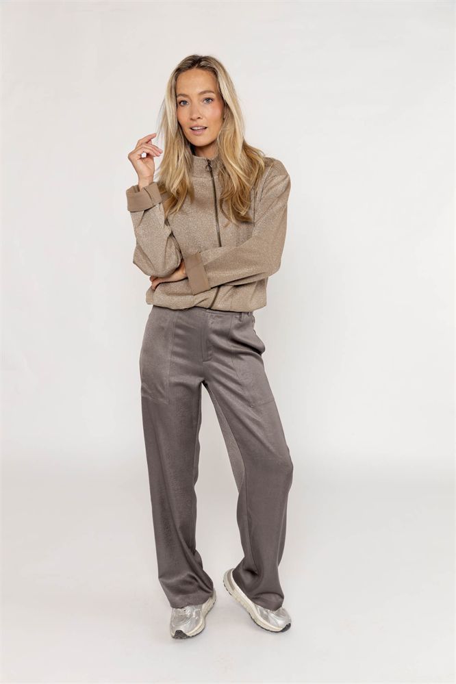This sweatvest is made of viscose with a subtle glitter. The sporty model is given a feminine touch by the glitter. With elastic drawstring in the hem.