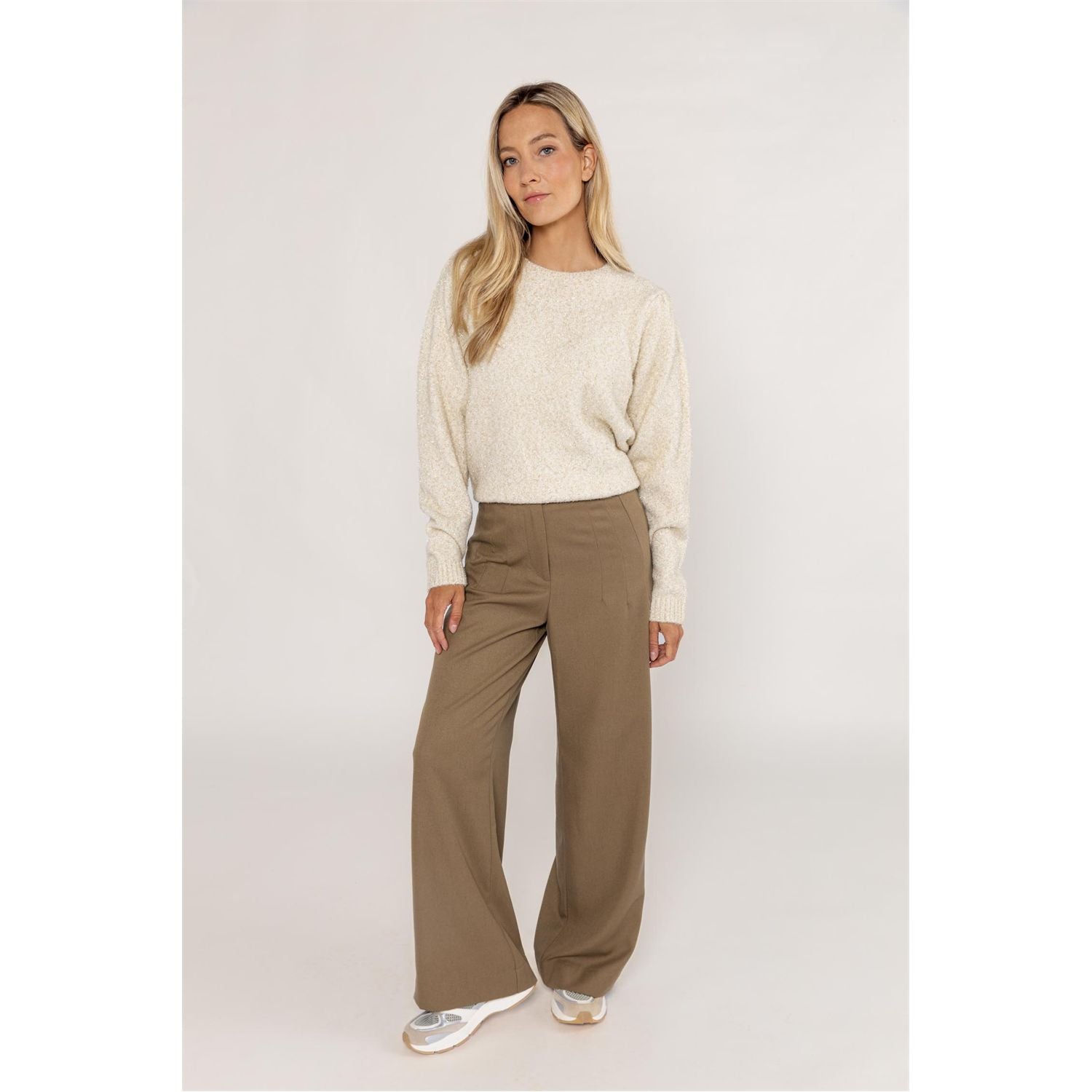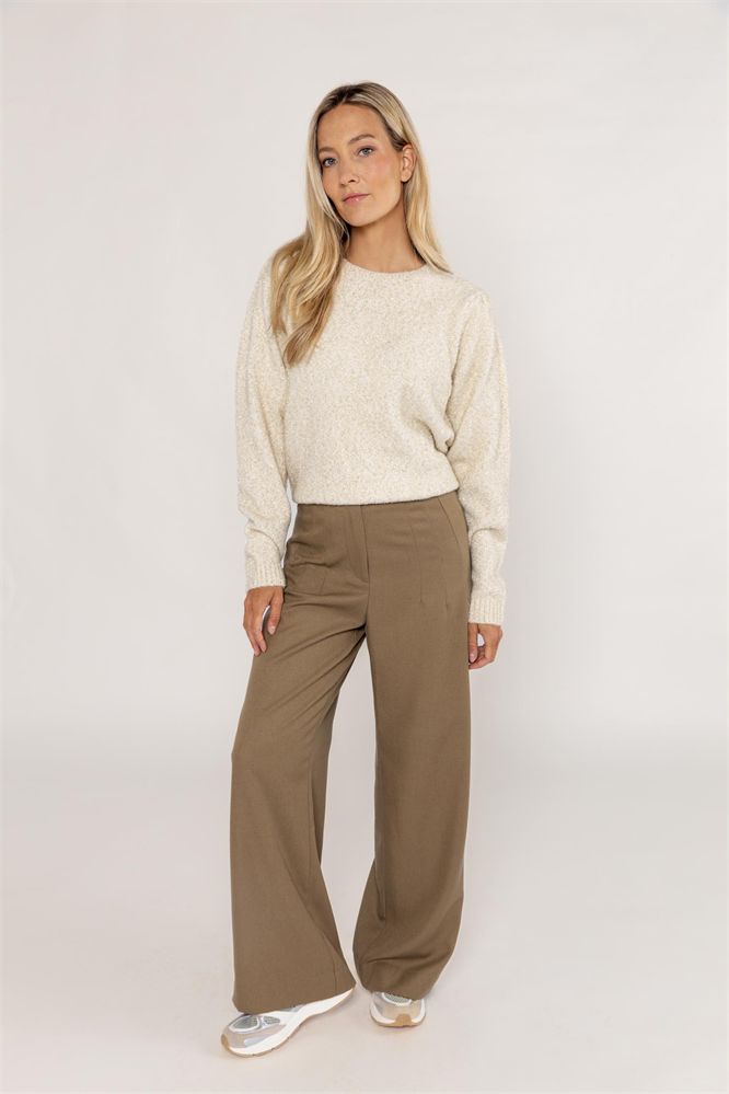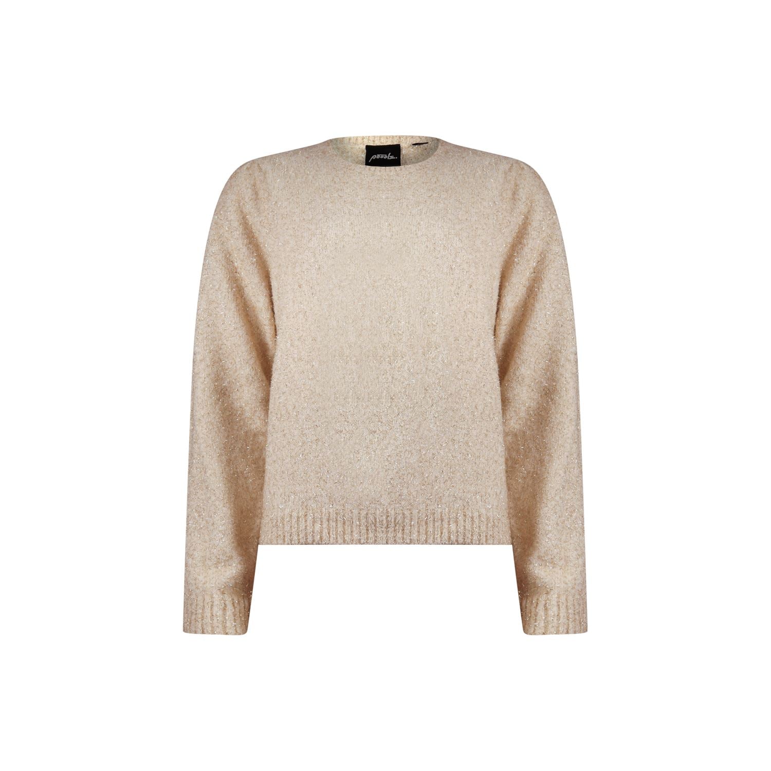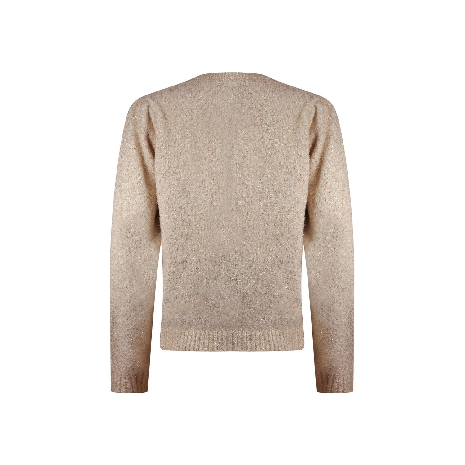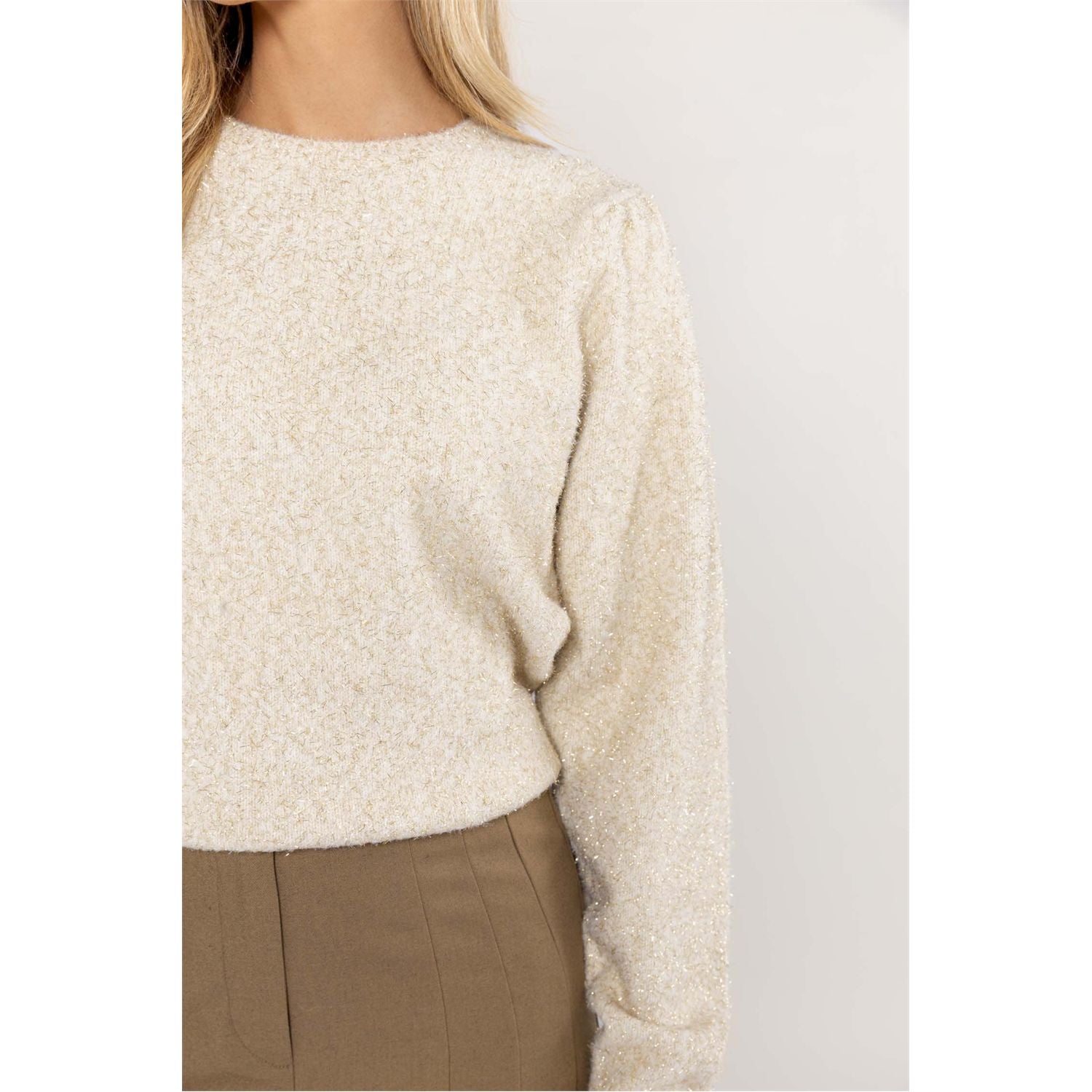 Zachte trui met lange mouwen, en ronde halslijn. De trui is gemaakt van gemeleerd garen met meegebreid lurex haartje voor je dagelijkse dosis glamour.
