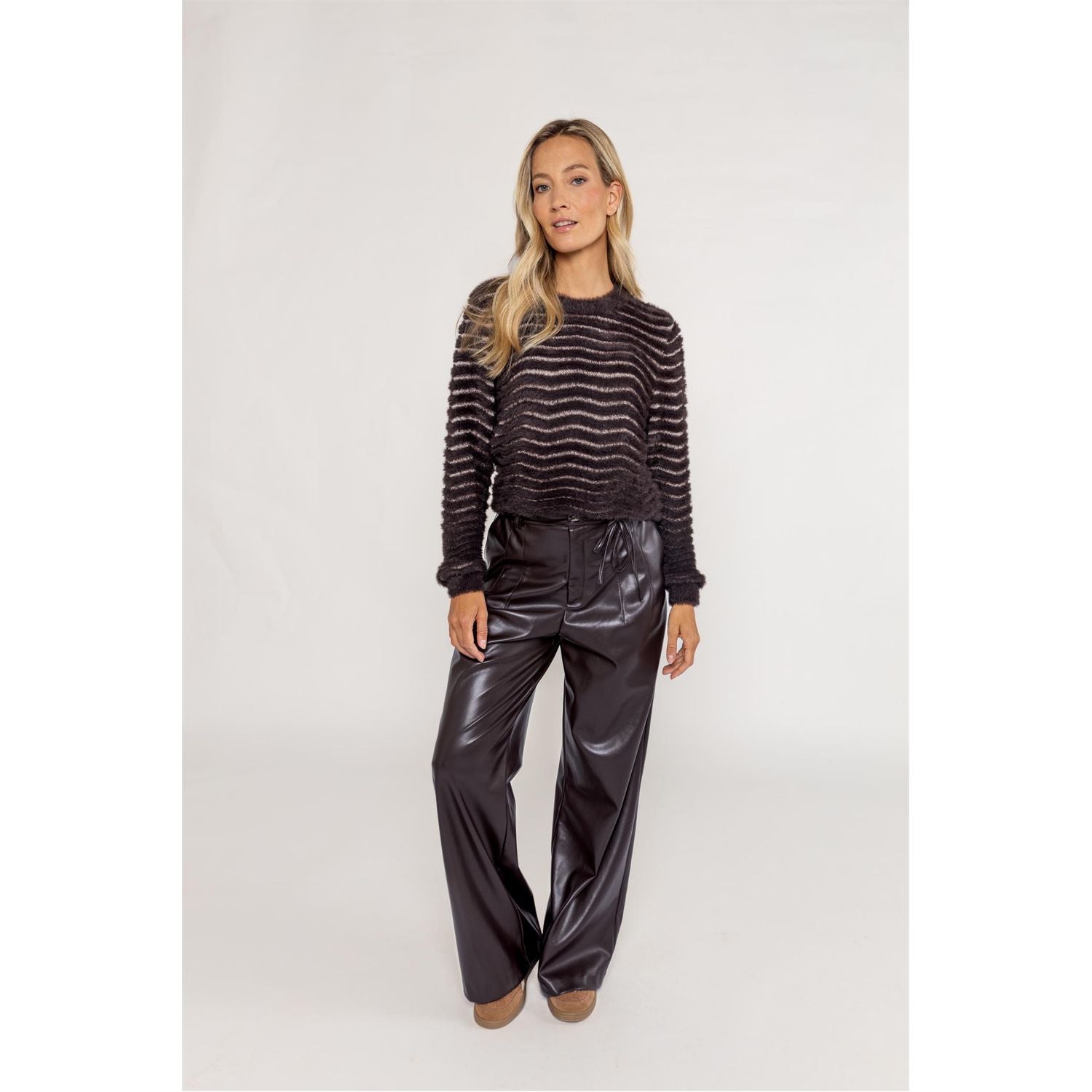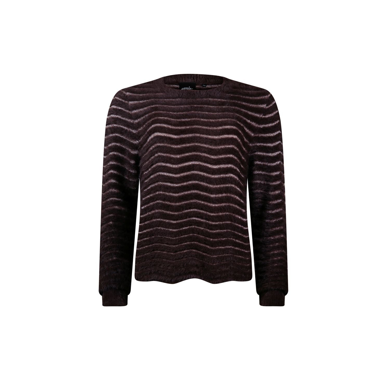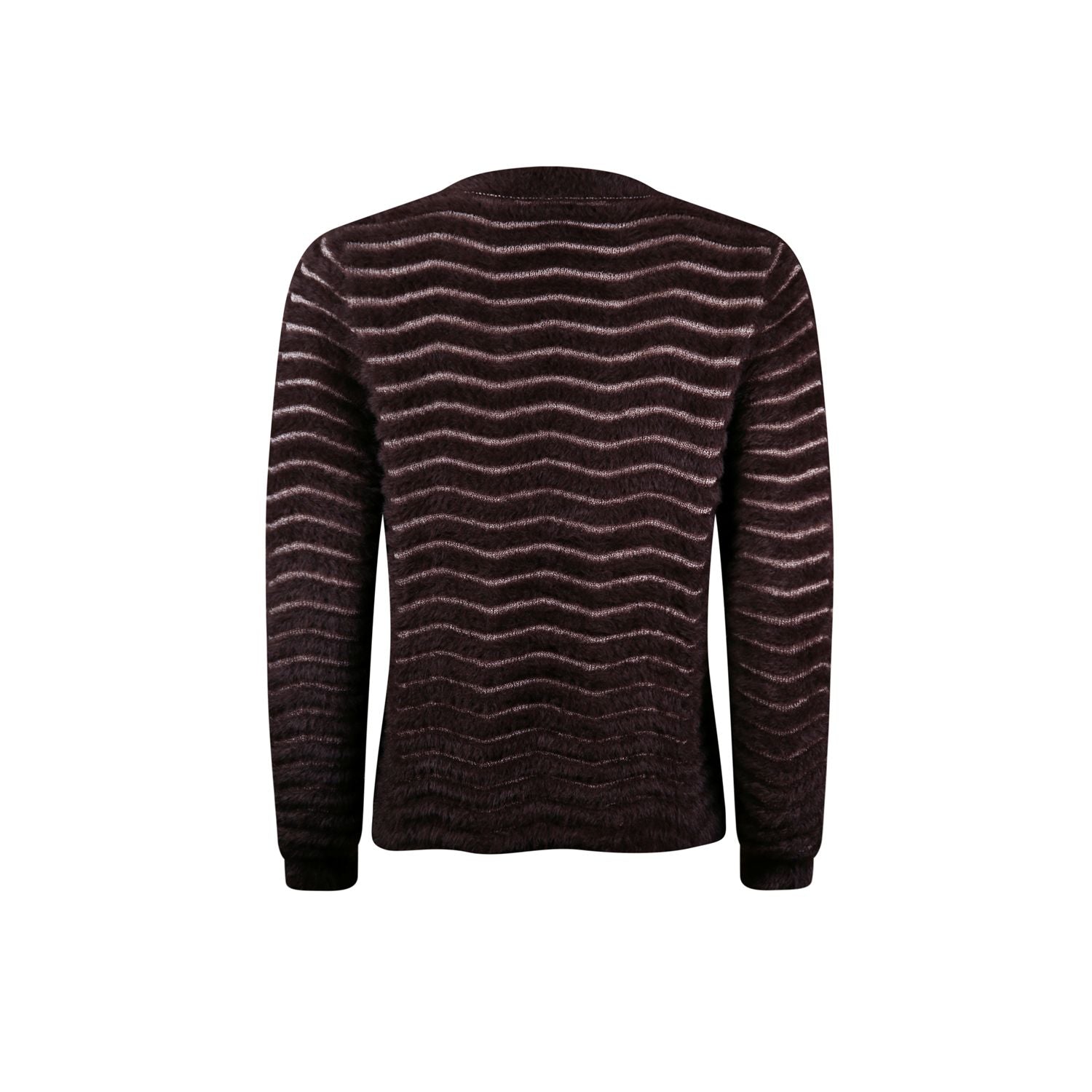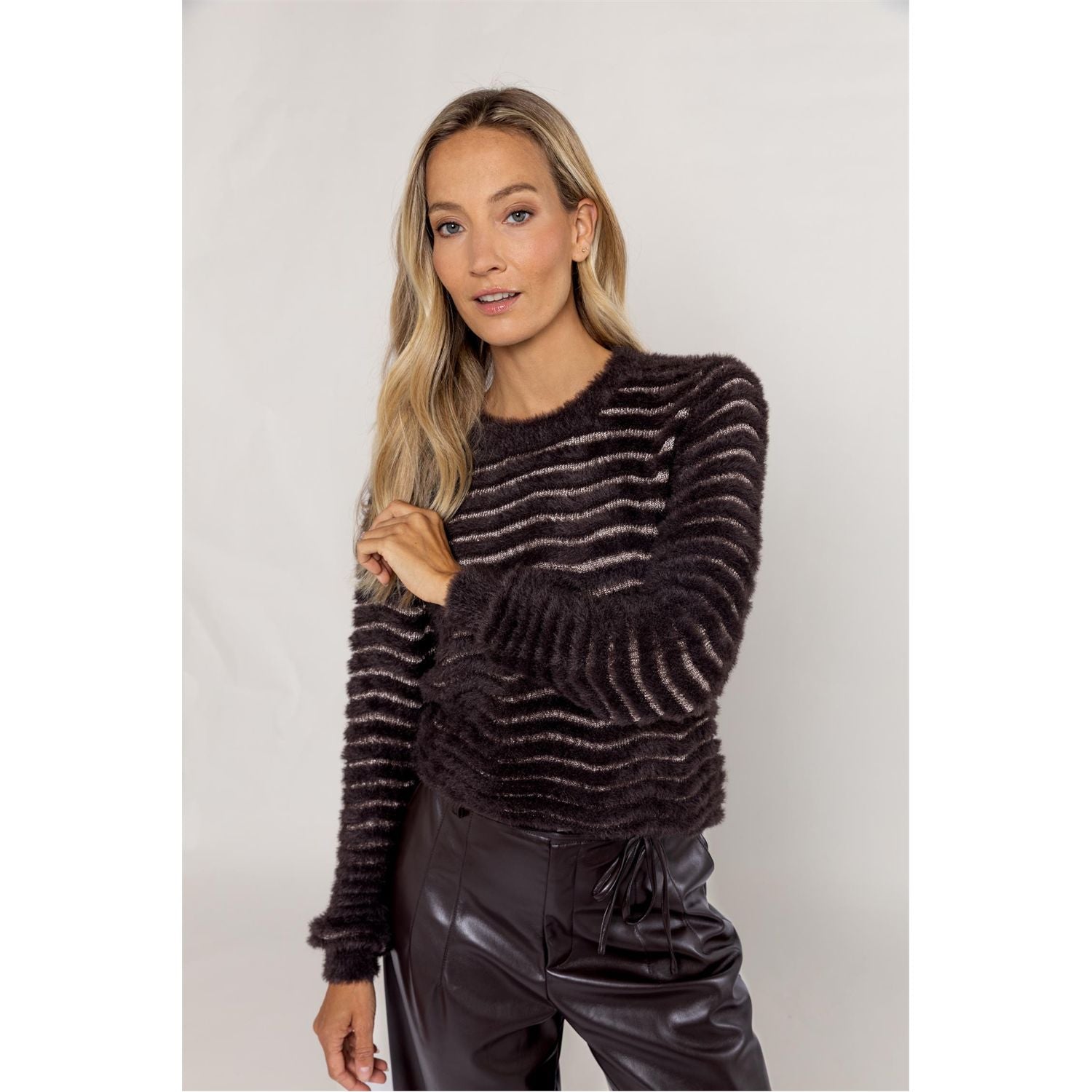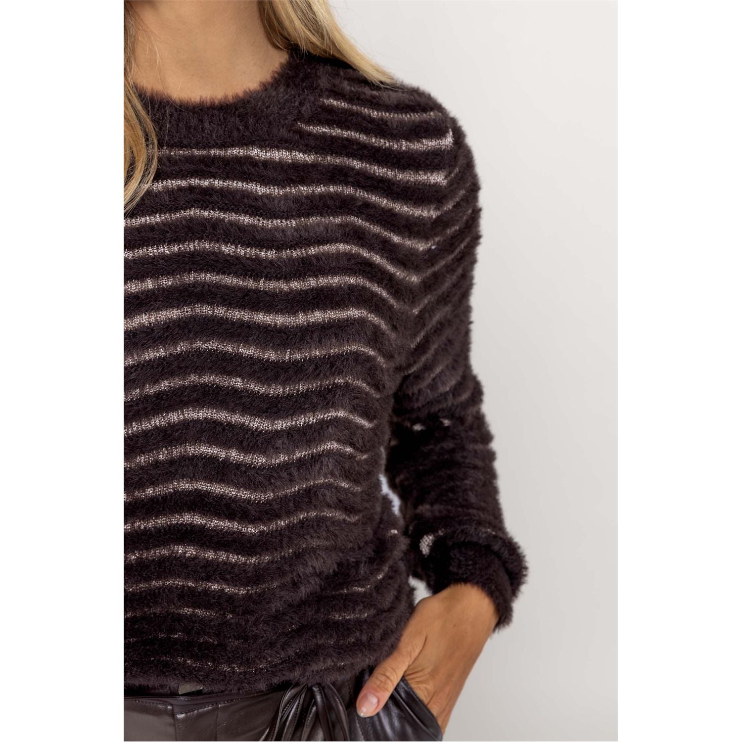 Harige garenmix trui met een golvend streeppatroon. De trui heeft een ronde hals en lange mouwen.