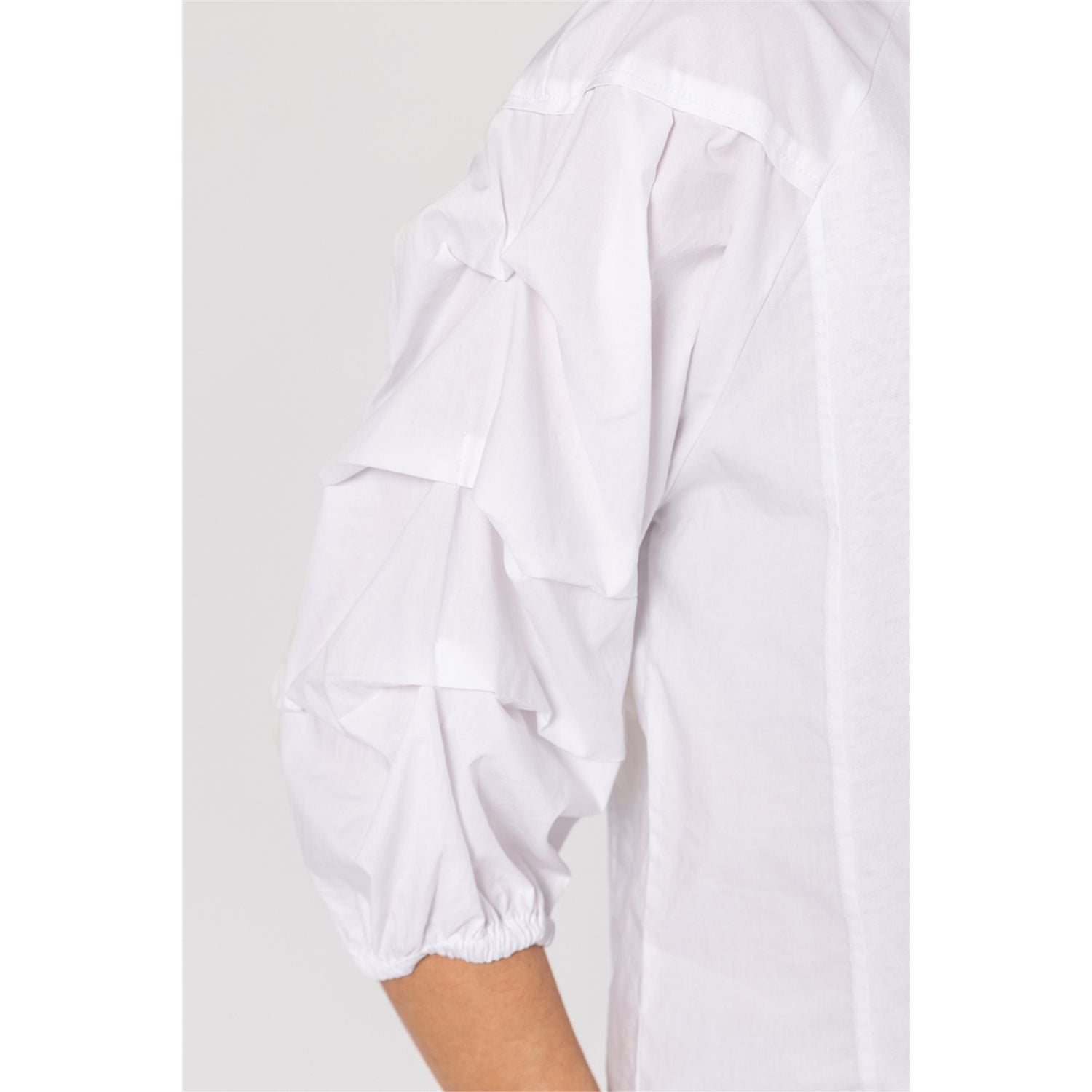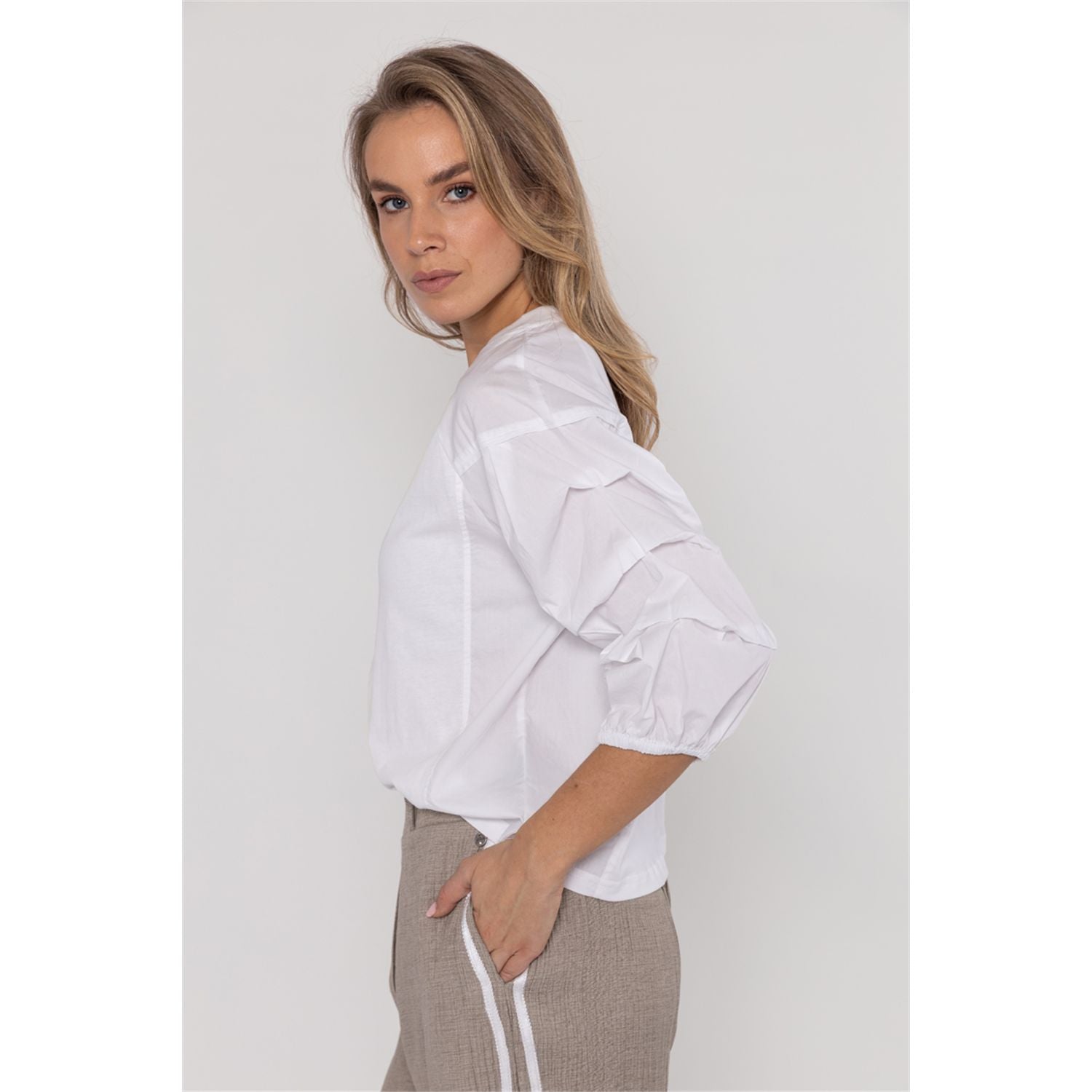 T-shirt van fabric mix met geweven raglanmouwen en gevouwen details, jersey body en ronde hals. Een basic die net even anders is voor een moderne look.