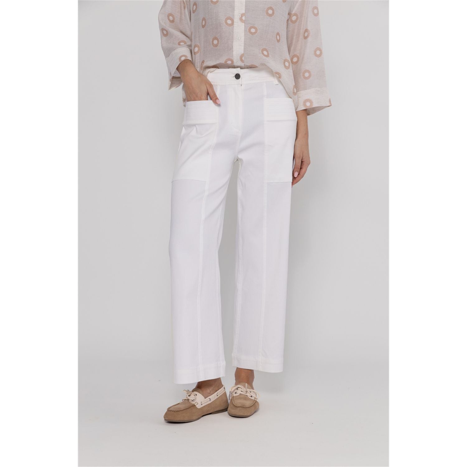 Comfortable pants in viscose blend with stretch, cropped straight leg and patch pockets. Perfect for a modern, relaxed look.
